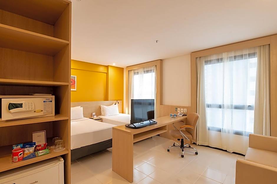 Pronto para se refrescar no refúgio quatro estrelas em Manaus? Uma convidativa área de piscina ao ar livre com piscina infantil convida a mergulhos ensolarados, enquanto a sauna e a sala de vapor oferecem um refúgio relaxante. Para manter-se conectado, há uma academia gratuita, Wi‑Fi gratuito e recepção 24 horas para manter os planos em dia, e o acesso por elevador facilita as chegadas e partidas após um dia de exploração.